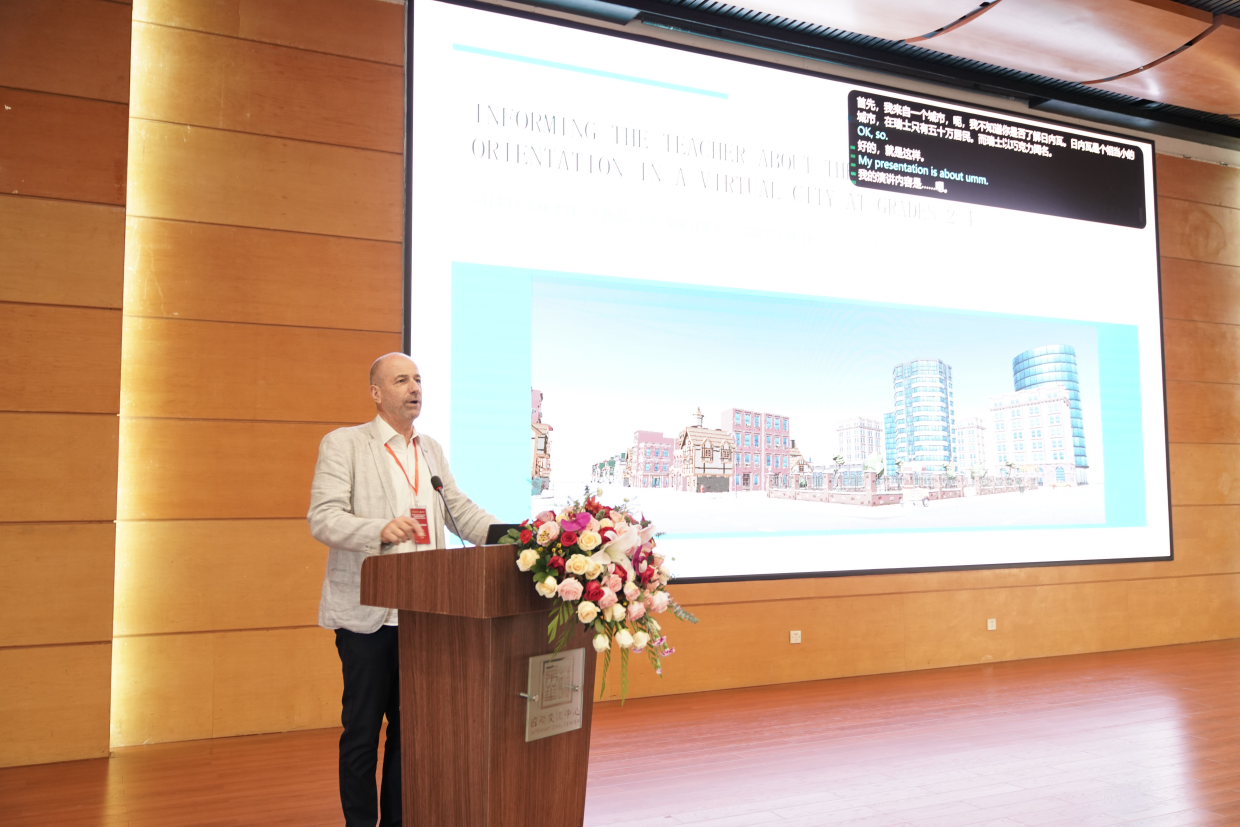 汇报伊始,Jean-Luc Dorier教授介绍了SPAGEO虚拟教学环境的研发初衷与实践价值以及重要成果,随后,教授分享了SPAGEO在日内瓦两所学校开展的三年实证研究情况。研究以小学2-4年级100名学生为研究对象,长期追踪虚拟环境中的教学实践过程,积累了丰富的研究数据。教授通过案例与数据,直观展现了虚拟教学环境在小学低段空间定向教学中的应用效果,让参会者清晰感受到数字化工具对数学教学实践的革新作用。